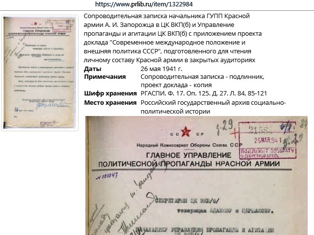 составленный лекторской группой Главного управления политической пропаганды Красной Армии